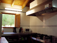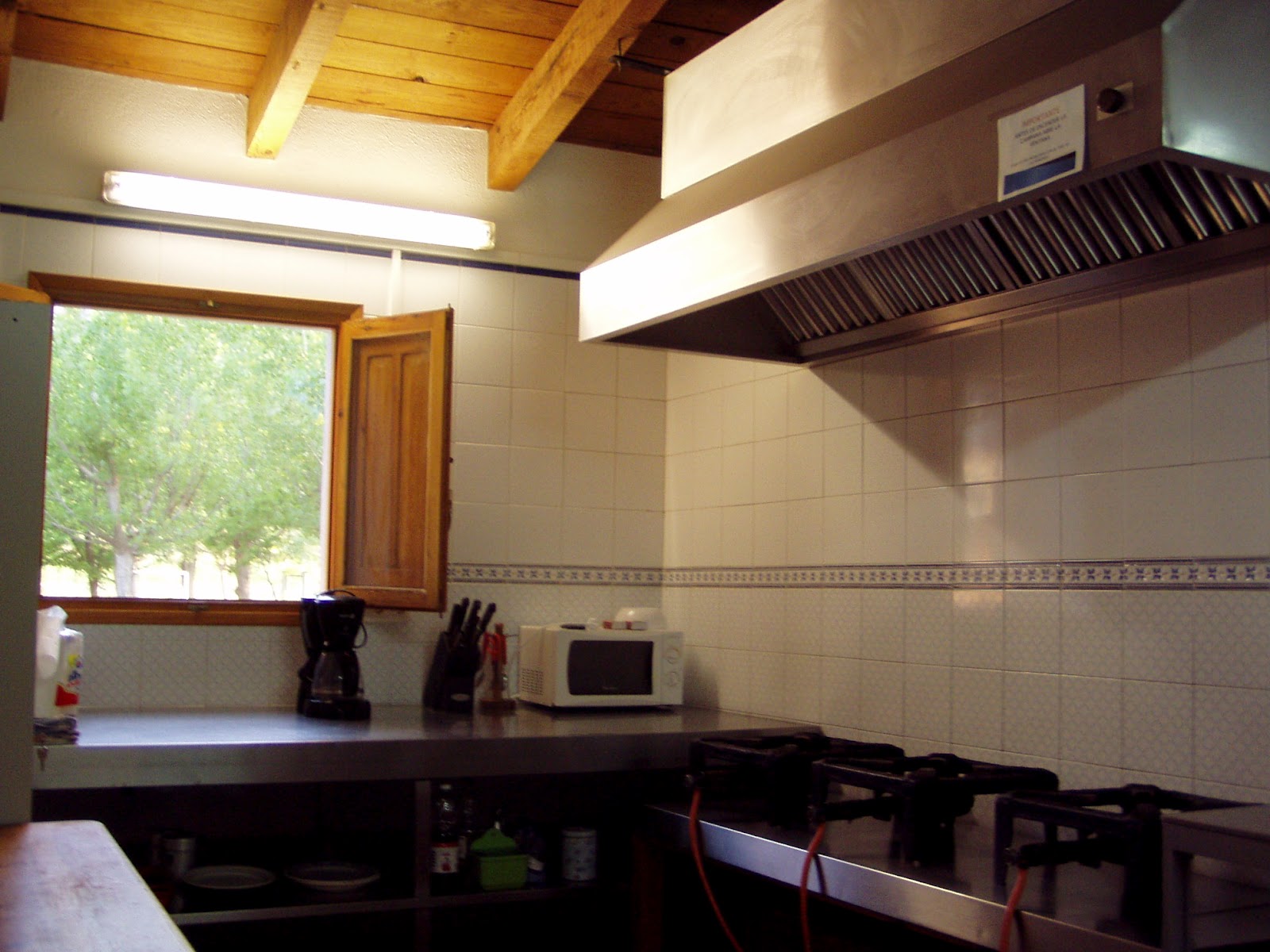 3 fuegos de butano, campana extractora industrial, lavamanos, microondas, arcón congelador, 2 frigoríficos, despensa con estanterías para almacenaje, 2 fregaderos gran capacidad, lavavajillas, agua caliente.